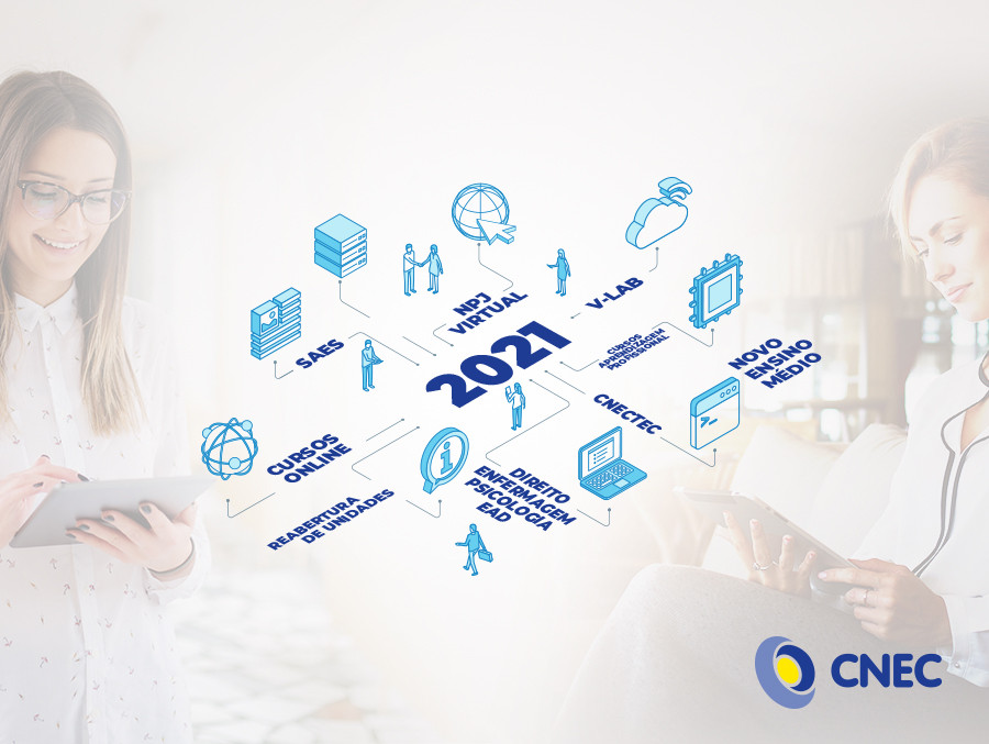 Dentre outros projetos de destaque, realizamos duas jornadas pedagógicas, a formação dos professores de redação utilizando o App de Redação CNEC Digital e diversas edições ao vivo do CNEC Talks. Reformulamos e aprimoramos a proposta dos Estudos Orientados Online, continuamos firmes no propósito de apoiar as nossas unidades com a Operação Presença, lançamos o Pré-Enem Online SuperAprova e realizamos mais uma versão do CNEC Cidadania.
