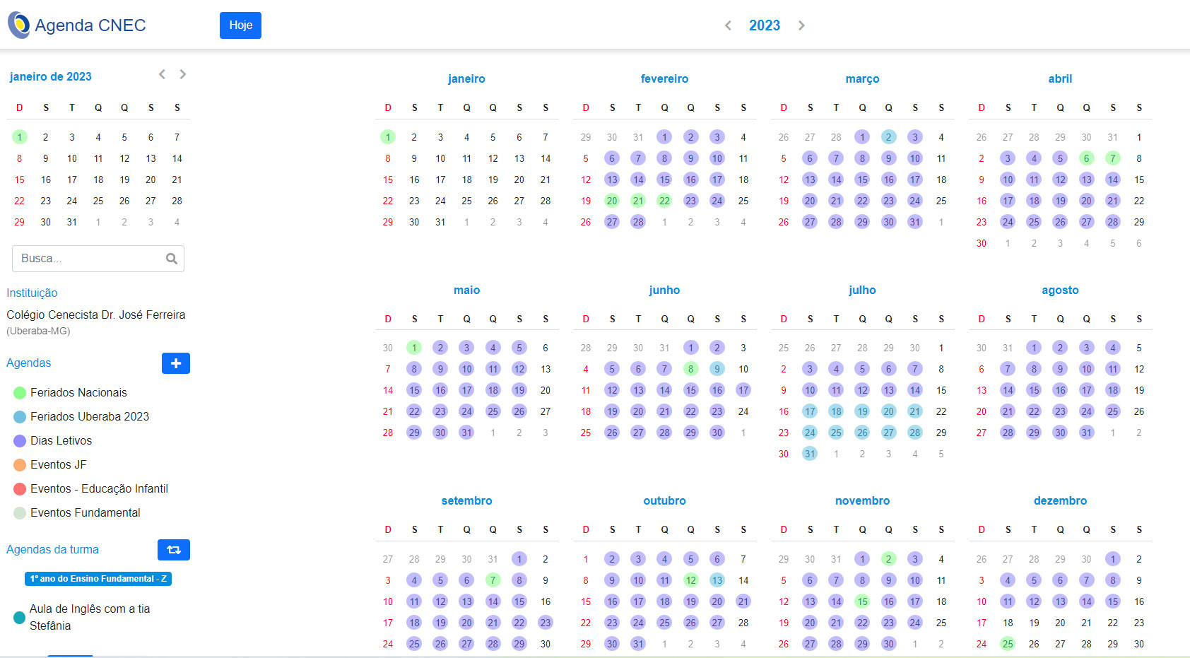 Os coordenadores também terão acesso à funcionalidade, podendo criar eventos e configurar os dias letivos. Isso garantirá uma maior interação entre os professores e alunos, além de facilitar a comunicação e a programação das atividades escolares. Além disso, os alunos poderão criar eventos pessoais na agenda, os professores poderão incluir eventos na agenda de suas respectivas turmas e os pais dos alunos terão acesso ao calendário individual de cada filho, permitindo um acompanhamento mais próximo e eficiente das atividades escolares de seus filhos.
